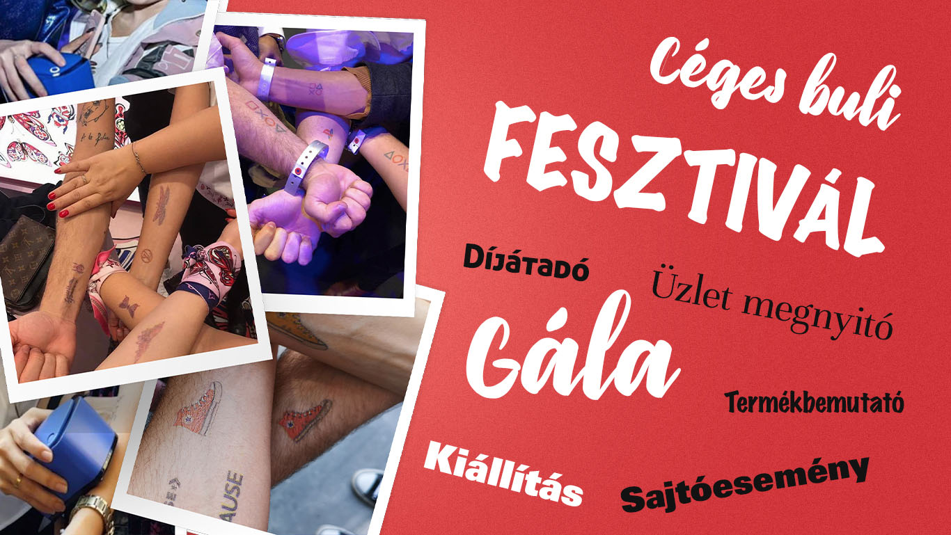 A TattooMe ideiglenes tetoválást készít személyre szabottan. A karszalagok ideje lejárt, tedd egyedivé a beléptetést rendezvényeden vagy szerezz egy különleges élményt vendégeidnek! Gyerekzsúrra, születésnapra és családi napra is remek program. A készülék 3 másodperc alatt a bőrre nyomtatja logód vagy egy általad választott motívumot, melyet egy érintő kijelzőn válaszhat ki a felhasználó. Tanusítvány bizonyítja, hogy a festék teljesen bizonságos és bőrbarát. A vízálló minta szappanos vízzel könnyedén eltávolítható.